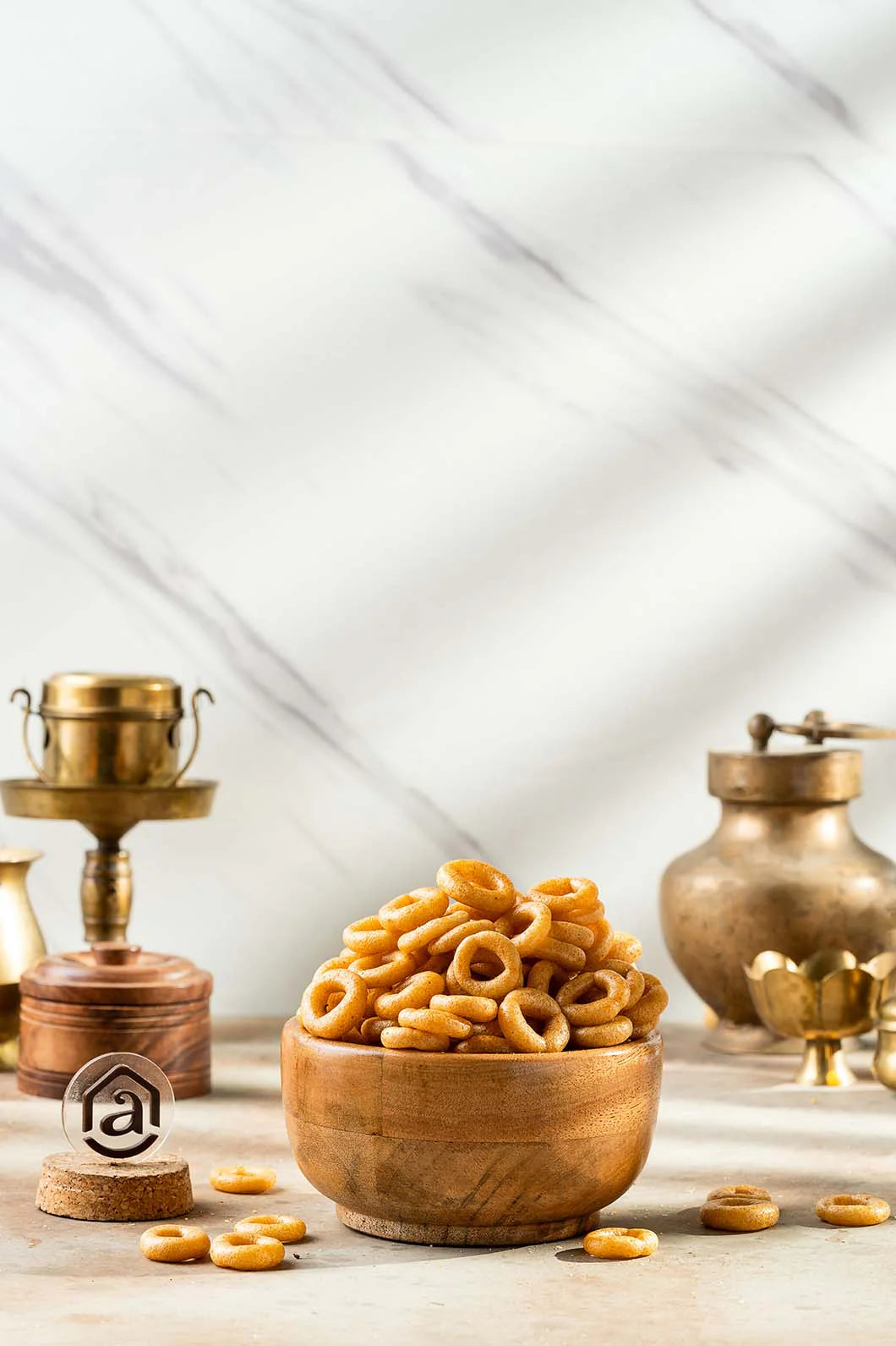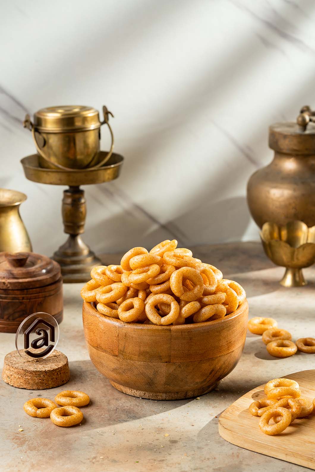 Small ring chips is popular among kids and is a definite must have staple if you have kids in the house. Made with rice flour and spiced to perfection with added crispiness to treat your tastebuds.